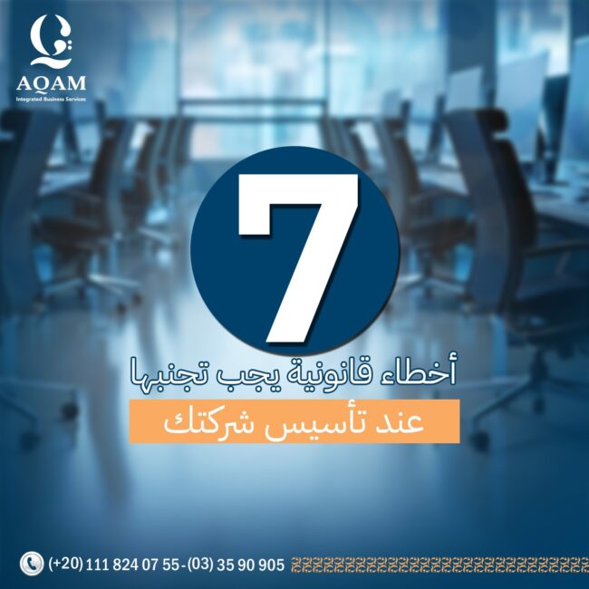 7 أخطاء قانونية يجب تجنبها عند تأسيس شركتك هناك العديد من الأخطاء القانونية التي قد تكون عائقًا أمام نجاحك،منها :      عدم اختيار الهيكل القانوني الصحيح عند تأسيس شركتك، من المهم اختيار الهيكل القانوني المناسب (مثل شركة ذات مسؤولية محدودة أو شركة مساهمة)، وذلك يؤثر بشكل كبير على التزاماتك الضريبية والقانونية، فالهيكل المناسب يضعك…